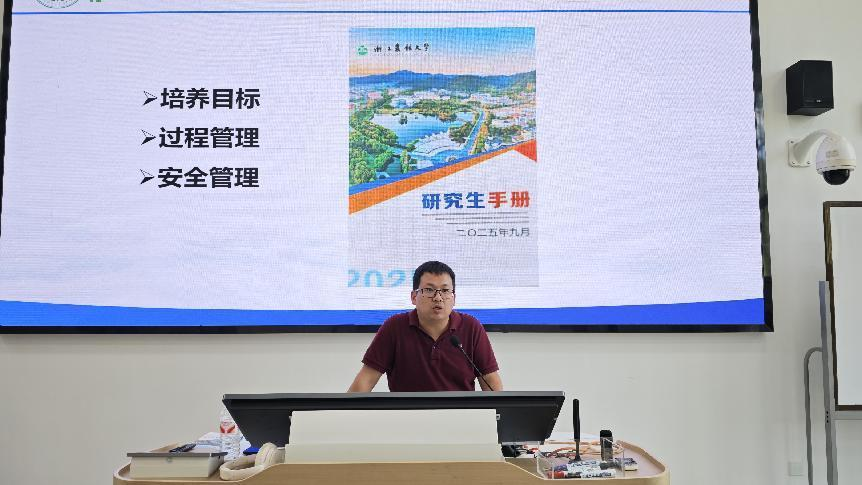孙学鹏对全体2025级研究生新生表示热烈欢迎。他强调园艺学科在国家农业发展和乡村振兴中的重要作用,并介绍了学院在科研创新和人才培养方面的成就,鼓励新生以严谨的态度深入研究专业领域。同时,他重点围绕学校、学院研究生培养目标、过程管理和安全管理三个方面,为研究生新生细致讲解了各专业培养计划设置、选课流程、学位授予标准、学术诚信和实验室安全等内容。