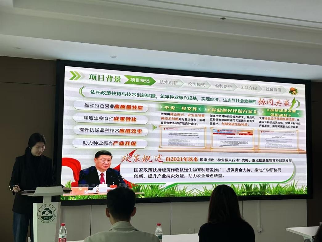 比赛现场,各参赛团队通过项目路演和答辩环节,围绕项目背景、核心技术、市场前景、团队优势等方面进行了精彩展示。参赛项目涵盖智慧农业、园艺产品深加工等多个方向,充分展现了园艺学子将专业知识与社会需求相结合的创新思维与实干精神。评委老师则从项目创新性、可行性、社会价值及现场表现等维度进行综合评分,并针对每个项目提出了许多细致、专业的点评与改进建议,对项目后续打磨有了更清晰的方向。