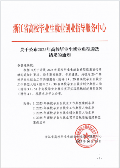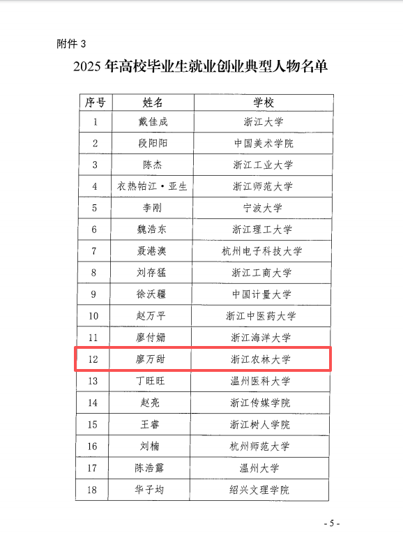 近日,浙江省高校毕业生就业指导服务中心公布了2025年浙江省高校毕业生就业创业典型人物评选结果,我院园艺18届毕业生廖万甜从众多竞争者中脱颖而出,光荣入选。
