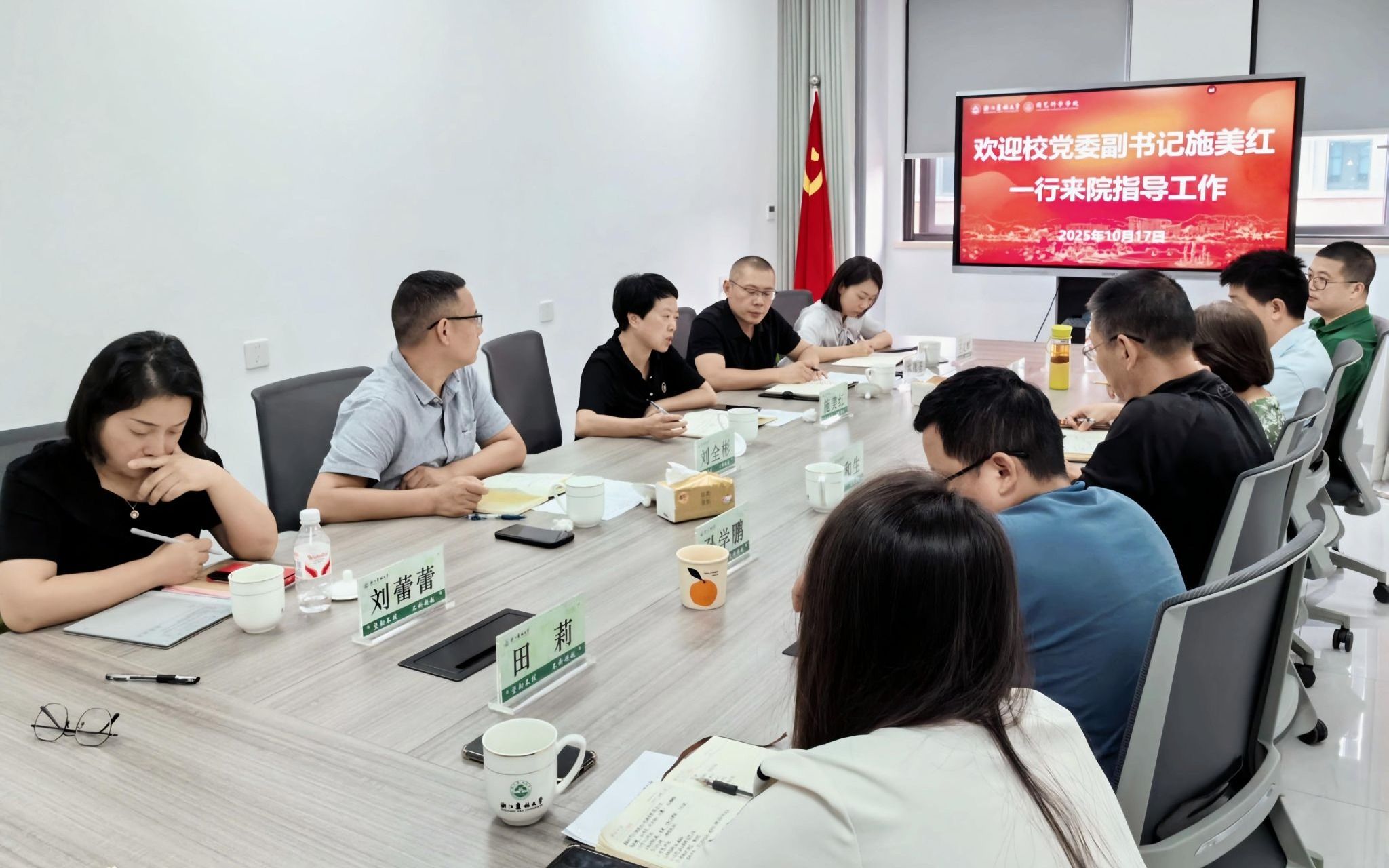 10月17日,校党委副书记施美红带队到学院调研指导工作。校党委组织部、人才办等部门相关负责人陪同,学院领导班子成员、教师代表参加座谈。