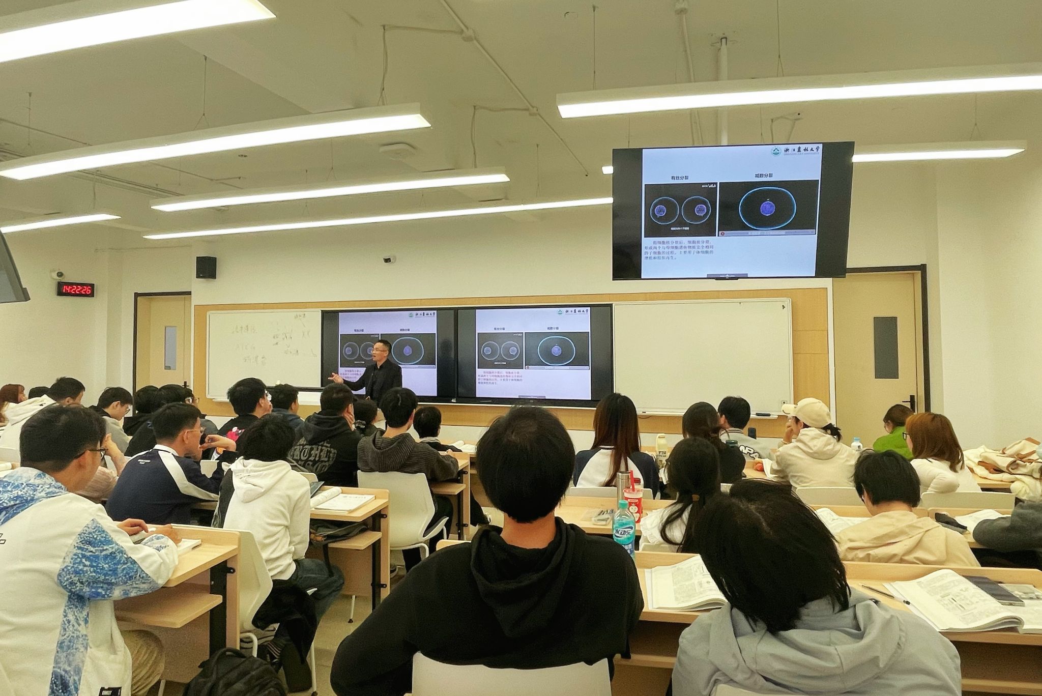 11月5日下午,李晓龙副教授讲授了《遗传学L》中的“染色体变异”章节。他运用大量高清的微观结构图片与动态模拟动画,将抽象的遗传学知识直观呈现出来;他同样借助“雨课堂”进行实时互动,课堂气氛活跃,学生参与度高。